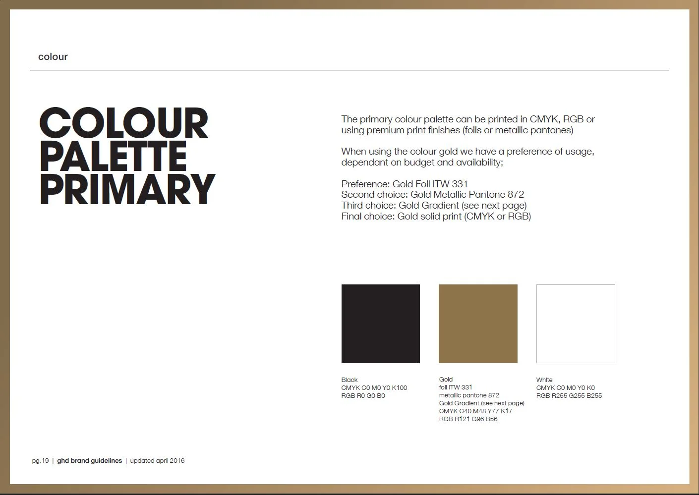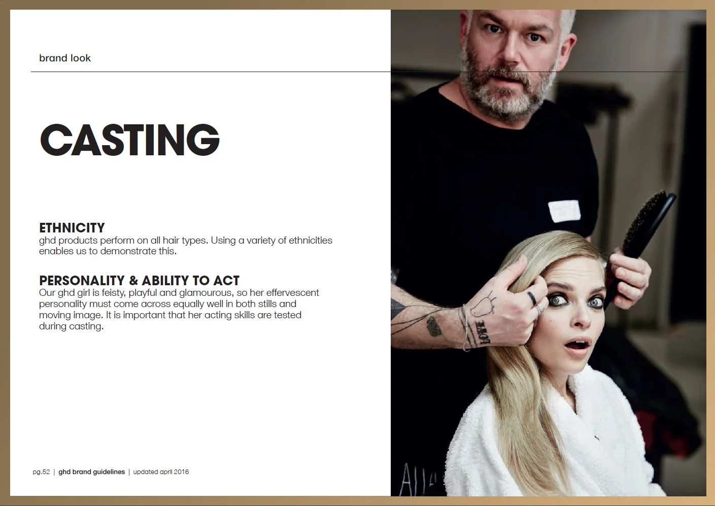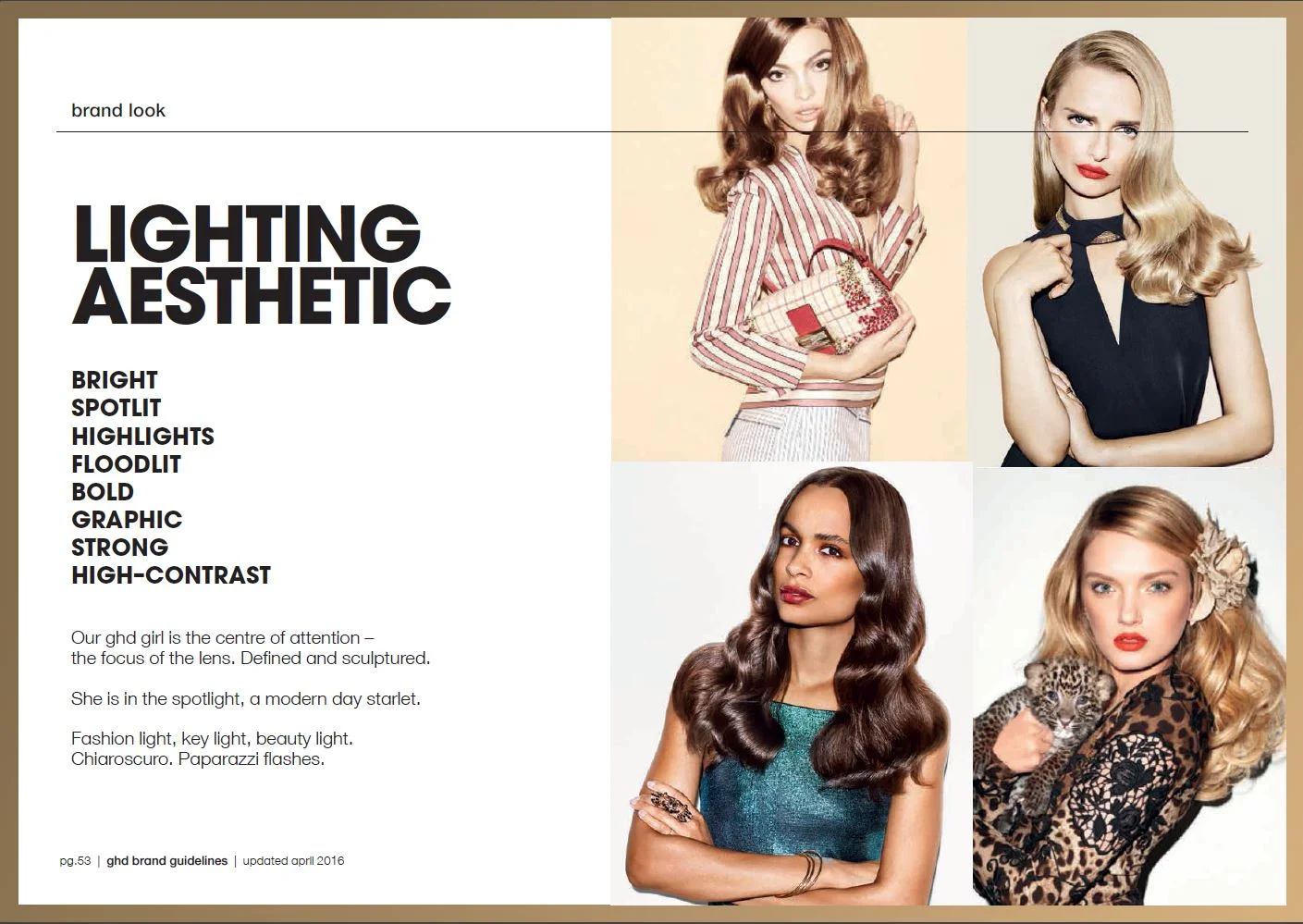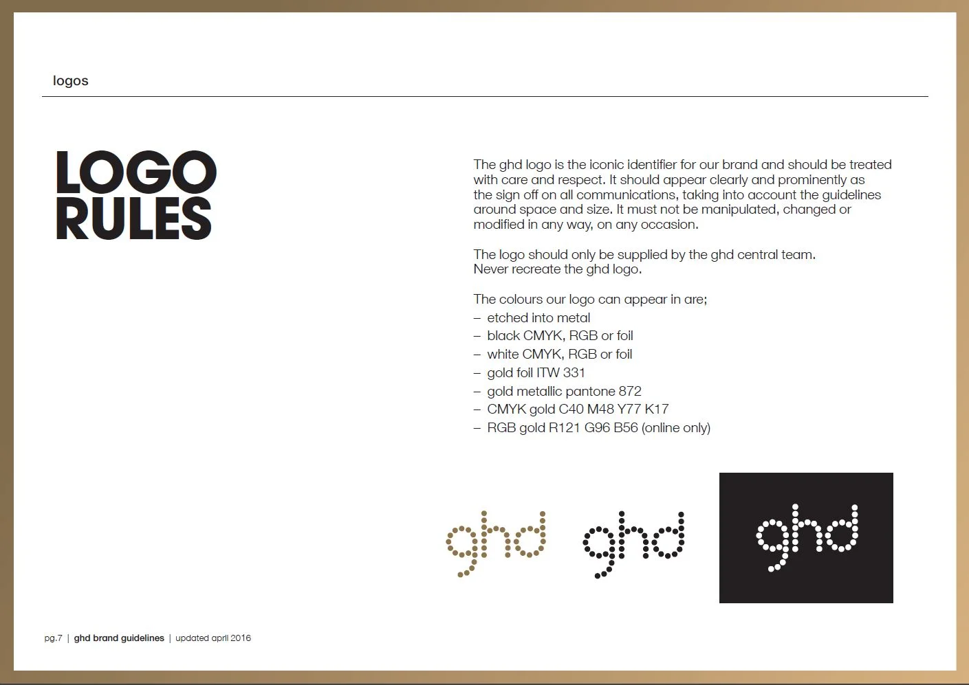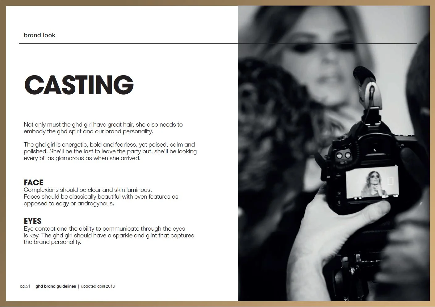The purpose of brand guidelines are to aid a company in building a stronger, more consistent global brand through a united and considered approach to design; from colours and materials to brand identifiers and tone of voice. I owned the project of writing and producing the ghd brand bible. Through multiple workshops and studies I produced a definitive set of design rules and principles that ensure ghd’s customers, whether these be stylists or consumers, see the ghd brand in a consistent manner across all channels – promoting strong brand awareness and recall.