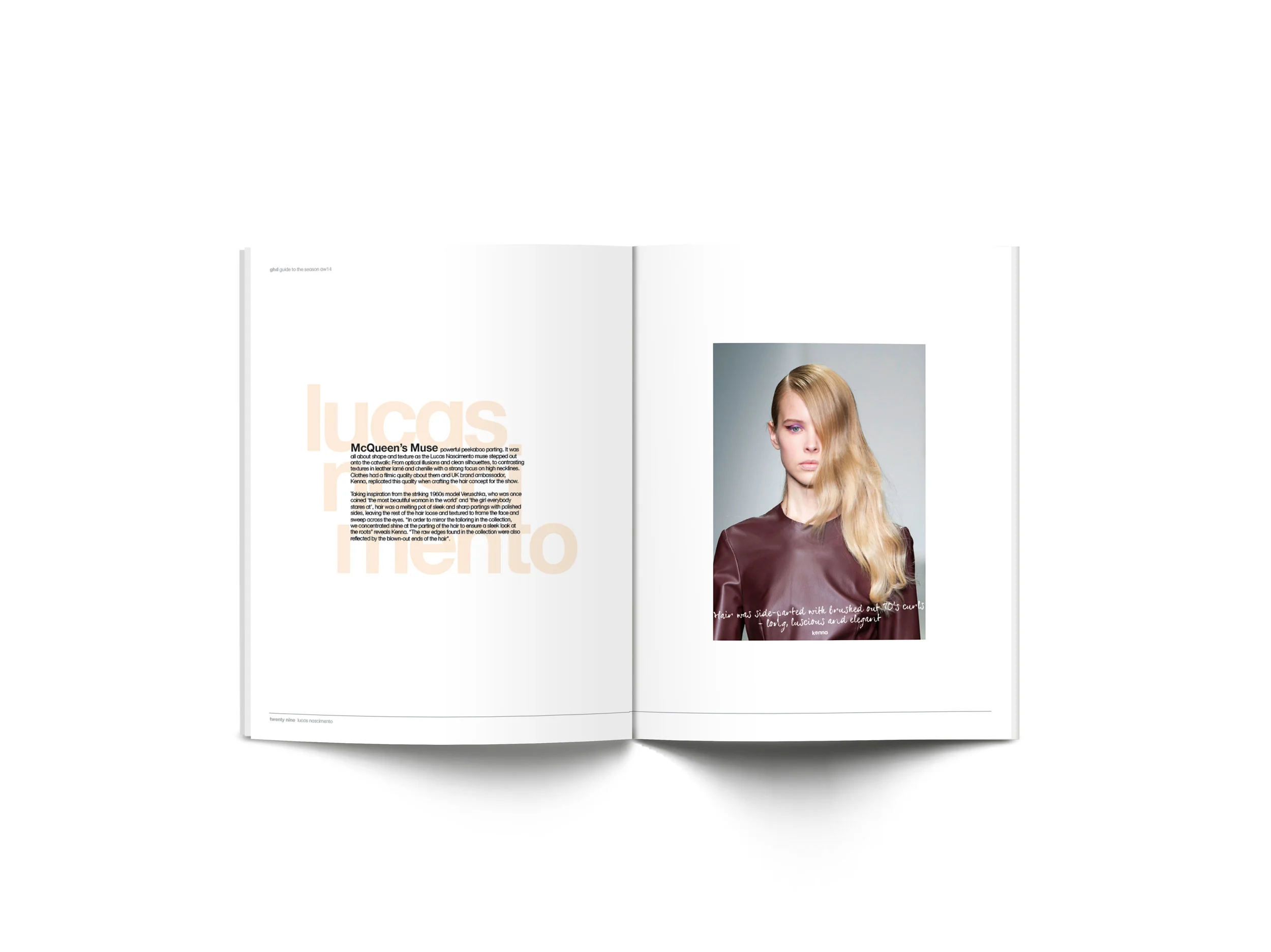 During the biannual fashion week calendar, ghd creates runway hair for designers such as Vivienne Westwood, Henry Holland and Victoria Beckham. The ‘guide to the season’ book for journalists focuses on the highlights from both the hair and fashion world. They need to be informative and engaging whilst reflecting the feel of each fashion week through creative editorial – with strong image selection key.